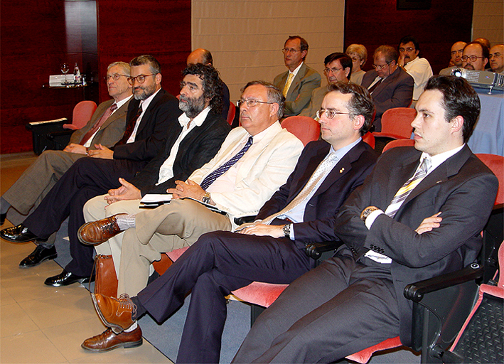 ACTO DE CONSTITUCIÓN, EN LA SEDE DEL COL·LEGI OFICIAL D’ENGINYERS INDUSTRIALS DE CATALUNYA, DE LA COMISIÓN ORGANIZADORA DEL 75.º ANIVERSARIO DE LA CONEXIÓN FERROVIARIA INTERNACIONAL POR LA CERDANYA, PRESIDIDA POR PASQUAL MARAGALL, PRESIDENTE DE LA GENERALITAT DE CATALUNYA. Octubre 2004.
