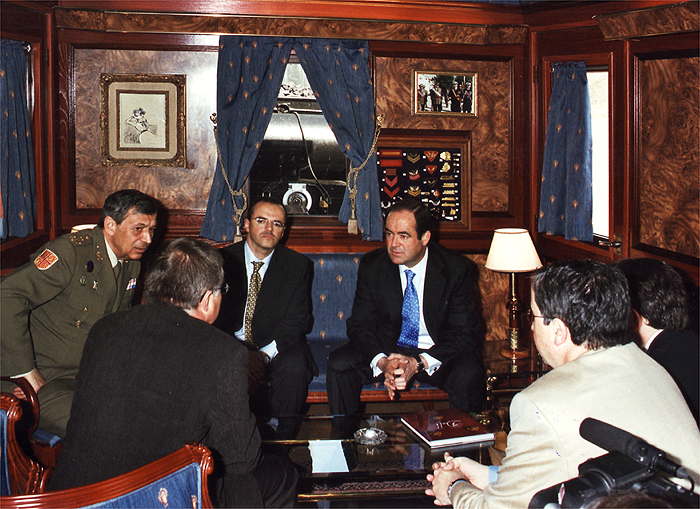 A los mandos de la locomotora había yo dispuesto que se hallara, como en otras ocasiones, el jefe de maquinistas Jordi Valero. En un momento dado, el ministro, en presencia del teniente general Francisco Boyero, inspector general del Ejército, fue obsequiado por Francisco Javier Navarro, coronel jefe del Regimiento de Ferrocarriles N.º 13, con una reproducción en miniatura de la locomotora que remolcaba el convoy. Durante el resto del trayecto, José Bono siguió departiendo con los numerosos diputados parlamentarios de diferente adscripción, titulares de diversas administraciones y delegados de varias entidades de la sociedad civil que le acompañaban.
